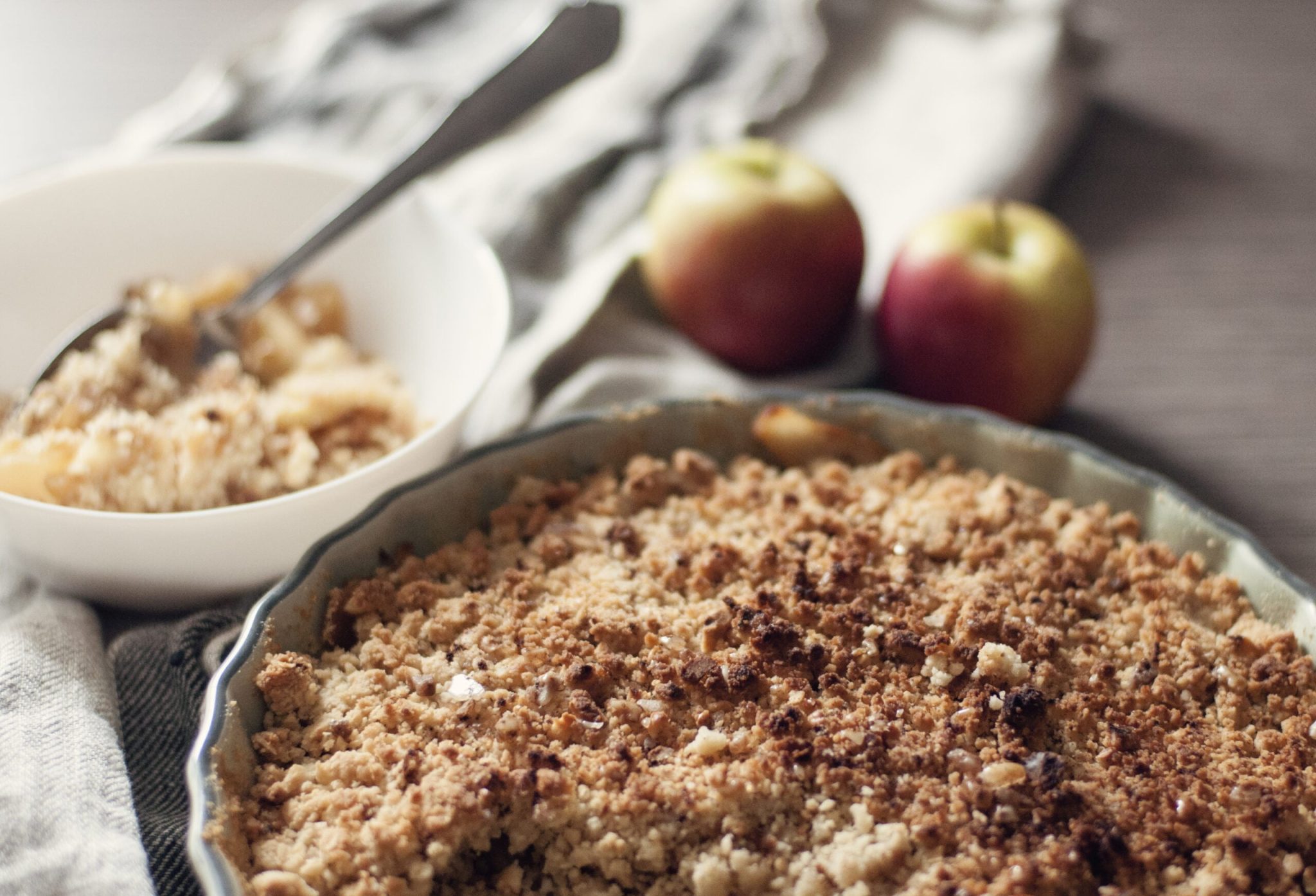 Questo dolce al cucchiaio di origine britannica è uno dei dessert più confortanti e goduriosi che possa esistere. Si realizza velocemente e con una facilità disarmate tanto da essere perfetto da provare per chi è alle prime armi in cucina e vuole stupire con un qualcosa di diverso dal classico tiramisù. Moltissime e svariate le varianti che si possono realizzare del crumble senza glutine. Io ho voluto utilizzare i biscotti gluten free al miglio tritati finemente assieme alle nocciole per ottenere, con aggiunta di latte di mandorla e olio extravergine di oliva, la golosa copertura della frutta. Utilizzate dell’olio di oliva dal sapore delicato e aromatizzate pere e mele con abbondante cannella. Per una versione vegana e senza glutine di questo dolce usate al posto dei biscotti al miglio i Dondoli Piaceri Mediterranei.