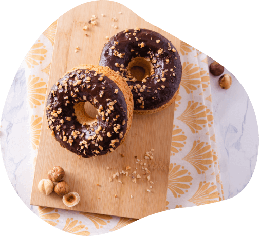 Deliziose ciambelle senza glutine con copertura al cacao e granella di nocciole. Un sapore autentico e speciale!