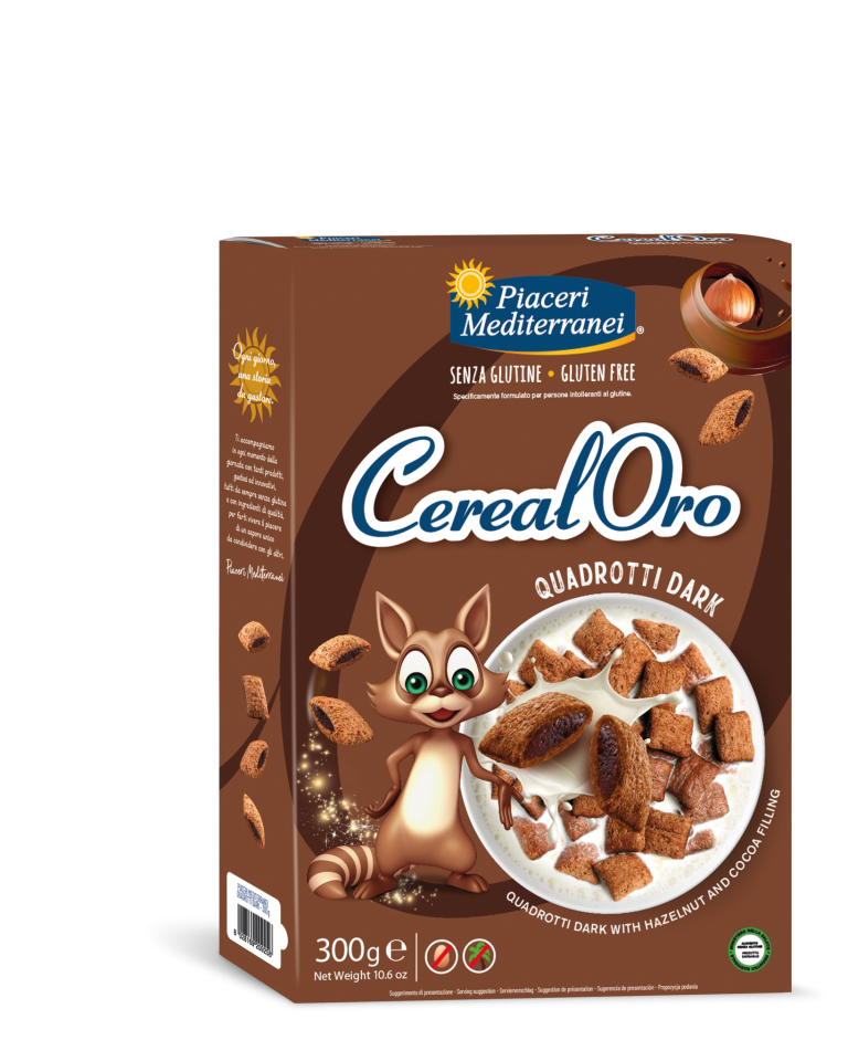 L'unione tra il cioccolato al latte e le nocciole crea un prodotto che si può solo amare! Sono proprio loro: CerealOro Quadrotti con cioccolato al latte e nocciole senza glutine.